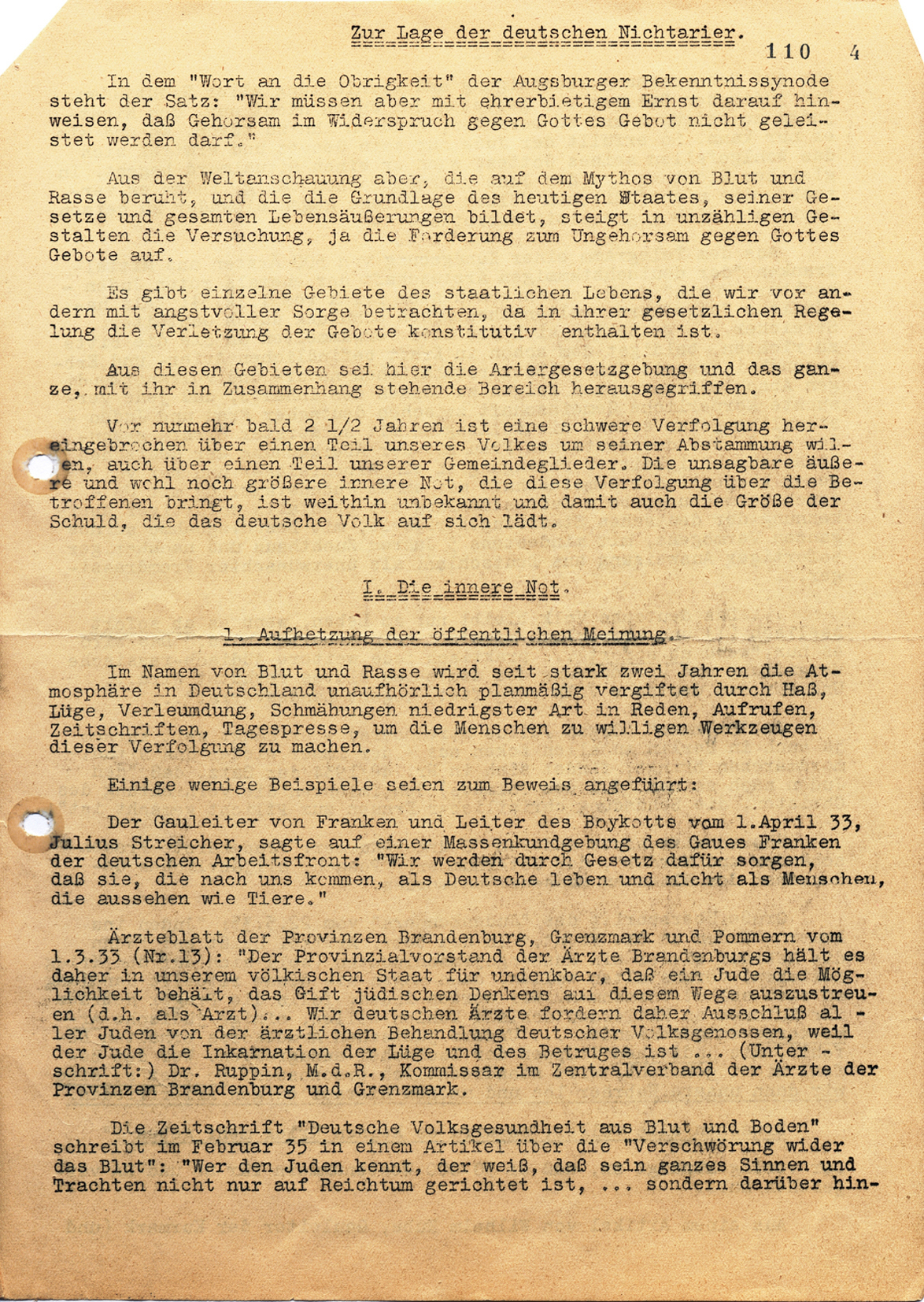 Unlike her church, she did not intend to remain silent in the face of such adversity. She drafted the memorandum “On the Situation of German Non-Aryans” in the summer of 1935 and added a supplement to it by May 1936.