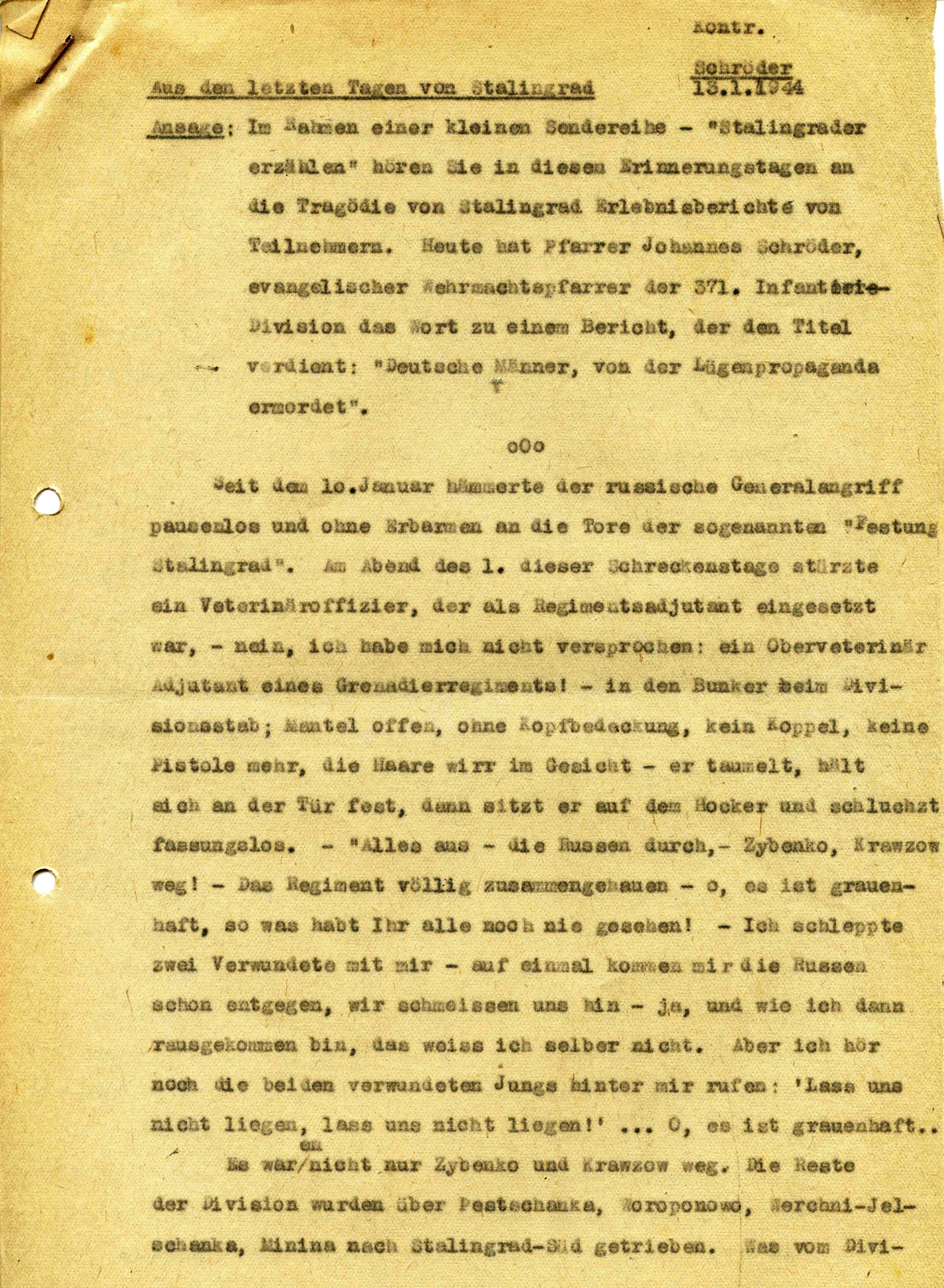 Schröder was the chaplain of the 371th Infantry Division, which was attached to the 6th Army before Stalingrad in December 1942.