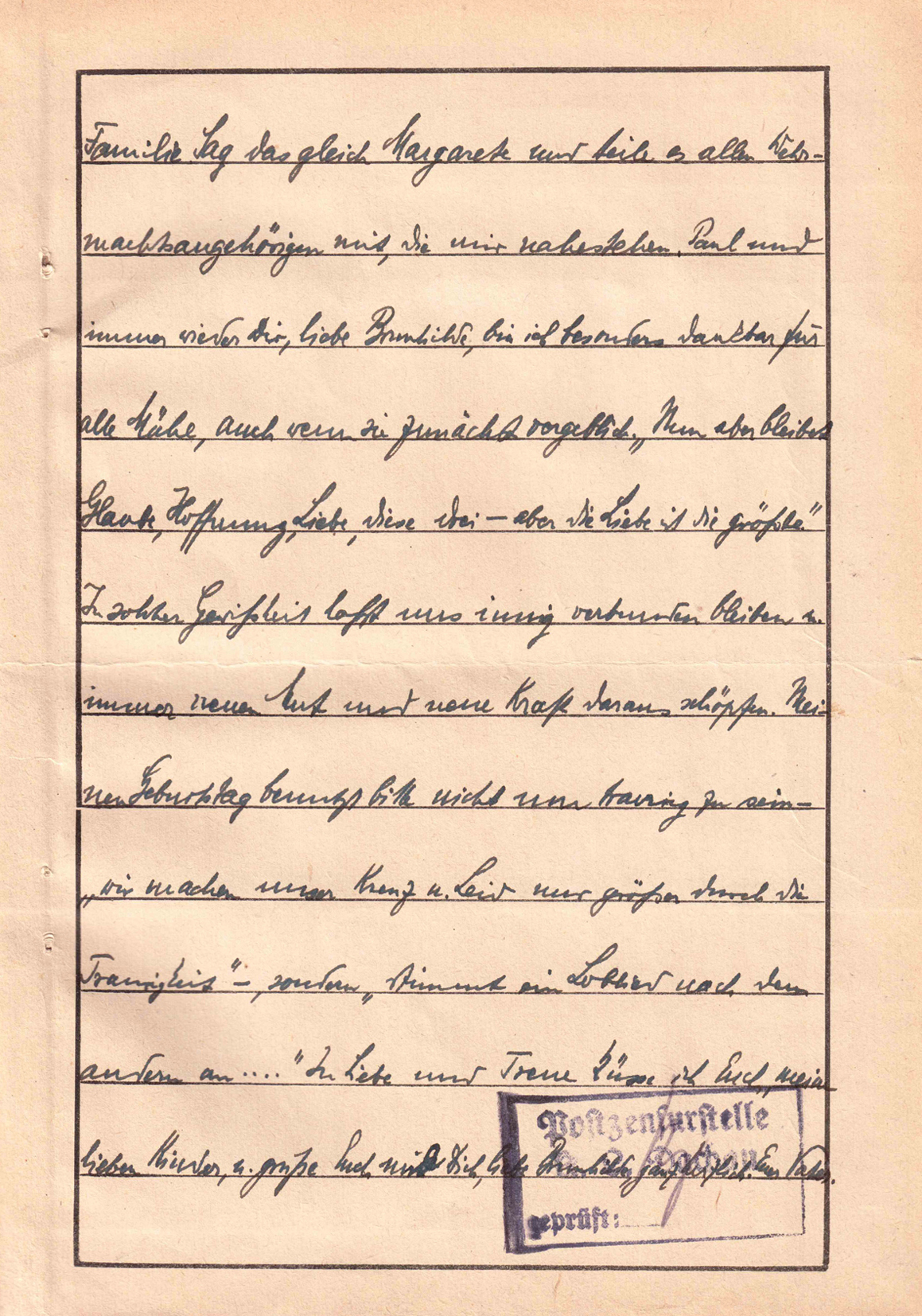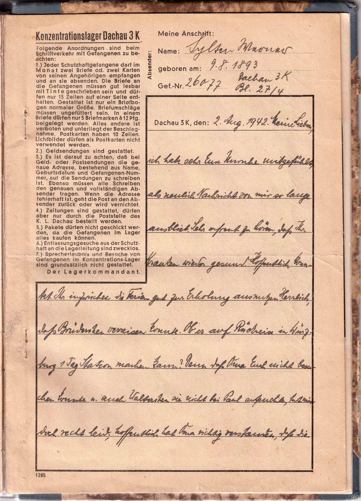 Werner Sylten corresponded with his family on a regular basis up until shortly before his murder. In his letters, he refrained from lamenting his own fate and endeavored to comfort family members and strengthen their faith. Even in his last letter of August 2, 1942, he attempted to impart hope grounded in Christian faith to his family. After his death, his friends ensured that the custody of his two sons was given to a member of the church council of the congregation in Berlin-Köpenick, who left the care of the children to Brunhilde Lehder. Her marriage with Werner Sylten, which the National Socialists denied, was legitimated after the war and she received a widow's pension from the Thuringian church government.